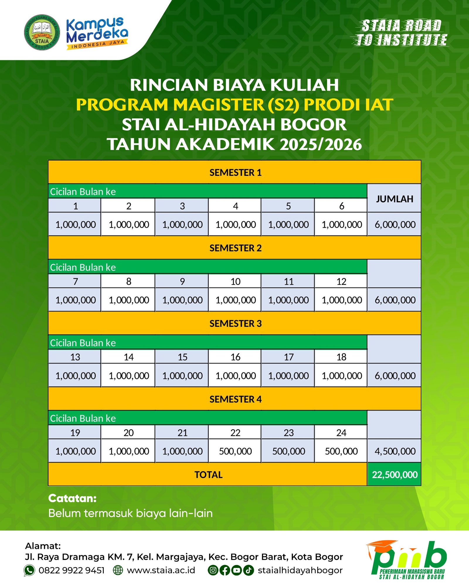 INFORMASI INFORMASI PMB Brosur Program Sarjana T.A. 2025-2026 Download/Lihat Brosur Brosur Program Magister IAT T.A. 2025-2026 Download/Lihat Brosur Biaya Program Sarjana T.A. 2025-2026 Download/Lihat Rincian Biaya Biaya Program Magister IAT T.A. 2025-2026 Download/Lihat Rincian Biaya Info Beasiswa Selengkapnya
